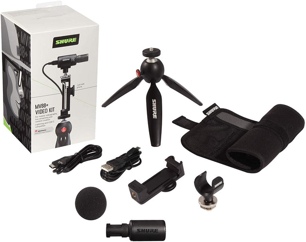 Shure MOTIV Vocal Condenser Microphone, Black (MV88+DIG-VIDKIT)