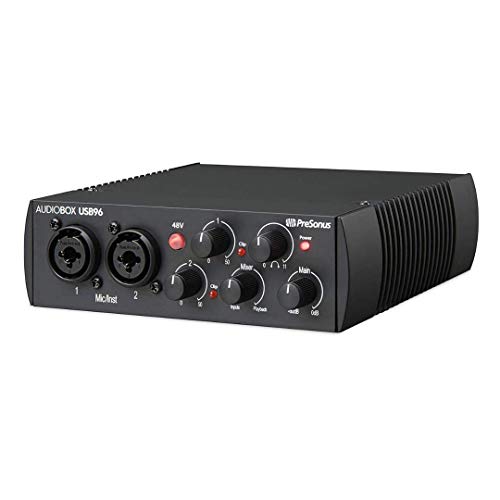 A great choice for mobile musicians, guitarists, and podcasters, the 2-in, 2-out AudioBox USB 96 audio interface is bus-powered, compact, ruggedly built, and works with virtually any PC or Mac recording software. It boasts two combo mic/instrument inputs with high-performance Class A mic preamplifiers, MIDI I/O, and professional-quality, 24-bit, 96 kHz converters. And it comes with PreSonus amazing Studio One Artist DAW software for Mac and Windows.