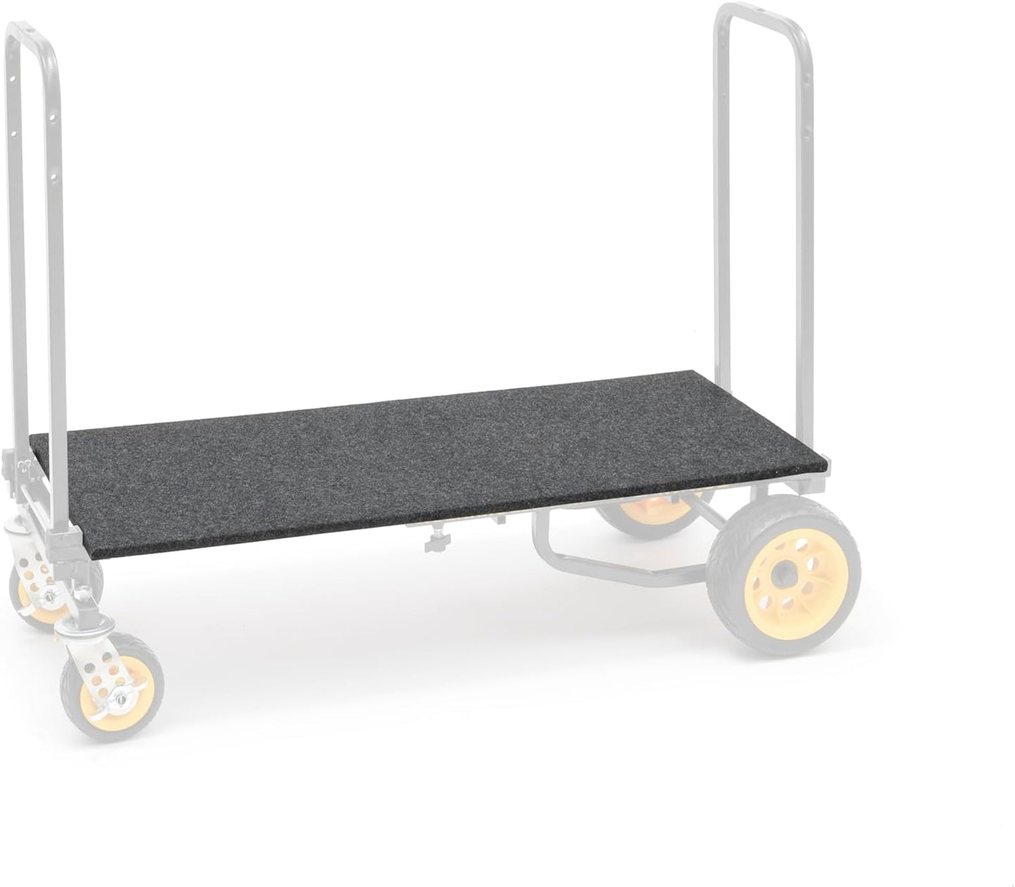 The Rock-N-Roller RSD6 Solid Deck for R6RT Multi-Carts is a one-piece 1/2 inch ply deck that attaches and detaches instantly to prevent small items from falling through the frame bed. The deck is carpeted to prevent equipment slippage.