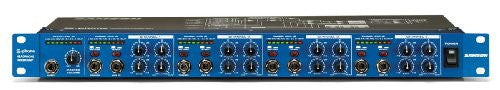The S phone is a versatile single rack space four channel headphone amplifier, loaded with advanced features that provide tremendous flexibility for monitor and cue mixing. The Master Input features an input level and LED meter to control and display the overall stereo input. Each of S phone's four channels includes three Headphone Outputs with an overall Volume control and individual Level meters. A convenient Stereo Auxiliary input is available on each channel so that individual line signals from direct or buss outputs can be mixed with the main stereo input. The Balance control adjusts the ratio of the Main and Auxiliary signal or the left to right balance (based on the setting of the ST/2CH switch) so that each headphone mix can be further tailored for a particular listener's individual needs ("More Me"). For greater sonic control, S phone also features a 2-band equalizer on each of the four channels. A master Stereo Aux input on the front panel is also supplied for inserting a second signal to all headphones.