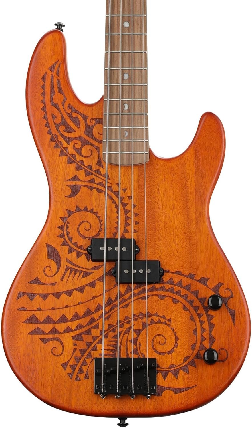 The tattoo design is laser etched with an open pore finish, so the player can feel the design. With this long-scale version, you'll enjoy the stable feel and satisfying response of comfortable action. From the Tattoo design to the funky body shape to the Moon Phase inlay design, the TAT 34 sports Luna's visual aesthetics. Bass players will be enveloped in deep, fundamental bass tone, whether fat and unadorned (with the tone control at zero) or mixed with the perfect treble component (with the tone control at maximum), or anywhere in between. Join the Luna Tribe!