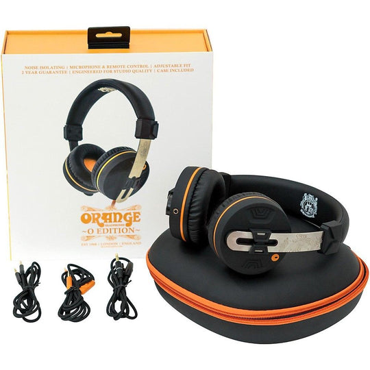 Orange O-Edition Headpphones, 40mm drivers, compatible w/ smartphones, two detachable 3.5mm jack cables, one with mic and control