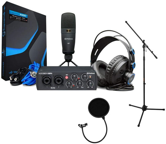 PreSonus AudioBox 96 Studio Recording Bundle Black with Mic Stand & Pop Filter Kit