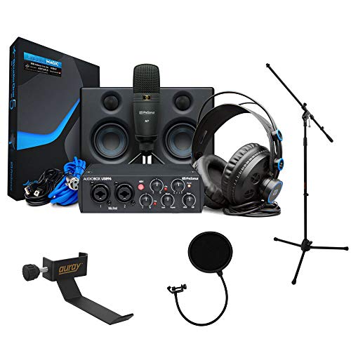 PreSonus AudioBox Studio Deluxe Ultimate Bundle (25th Anniversary) with Mic Stand, Headphone Holder & Pop Filter Kit