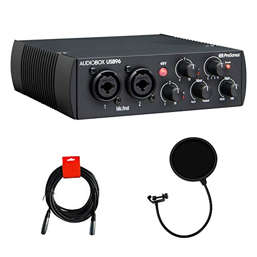 PreSonus AudioBox USB 96 2x2 USB Audio Interface (25th Anniversary Black) with Pop Filter & XLR Cable Bundle