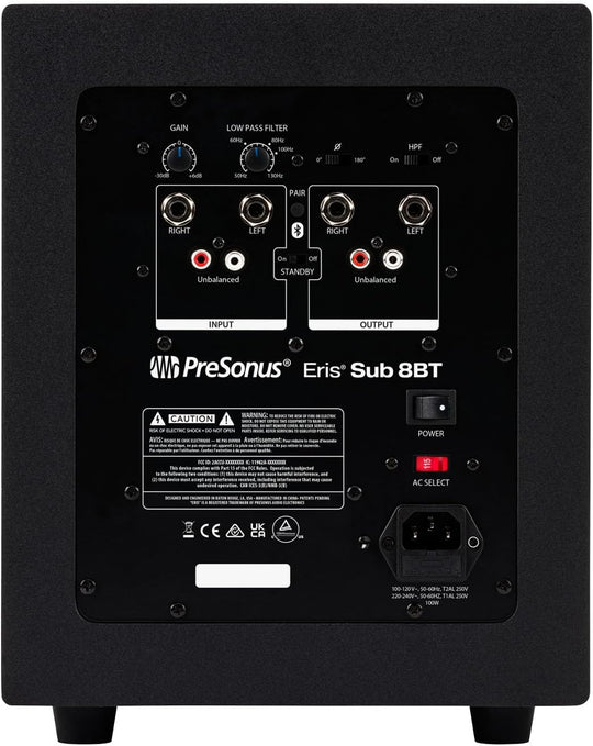 PreSonus Eris Sub 8 Compact Studio Subwoofer8-inch, front-firing, paper-composite transducer with high-elasticity rubber surround delivers smooth low-frequency transients.Waterproof : No100W Class AB amplifier (50W RMS) gives robust output with minimal distortion.Now comes included with Studio One...Regular price $199.99 -