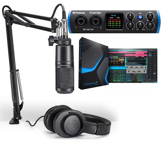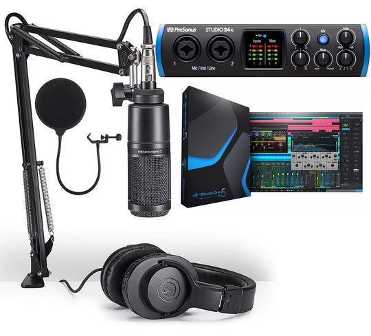 BUNDLE INCLUDES:- PreSonus Studio 24c 2x2, 192 kHz, USB-C Audio Interface- Audio-Technica AT2020PK Vocal Microphone Pack for Streaming/Podcasting- Pop Filter IncludedPreSonus Studio 24c 2x2, 192 kHz, USB-C Audio Interface, 2 Mic Pres-2 Line Outs/New Version. Great...Regular price $279.00