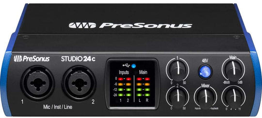 PreSonus Studio 24c 2x2 USB Type-C Audio/MIDI InterfacePreSonus Studio 24c 2x2, 192 kHz, USB-C Audio Interface, 2 Mic Pres-2 Line Outs/New Version. Great for recording studios, mobile musicians, guitarists, podcasters, and live streaming, the bus-powered Studio...Regular price $179.95 -