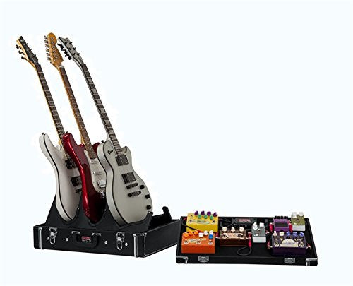 • Gig-Box Jr. All-In-One Pedal Board and 3x Guitar Stand Combo Case with Classic Wooden Case and 21.5" x 15" Pedal Board Surface