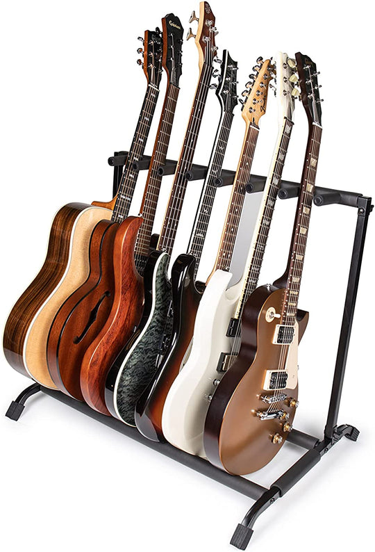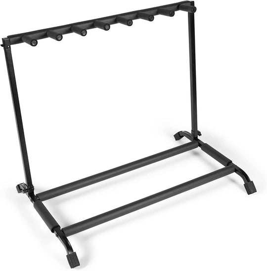 RIGTRRACK7 Rok-it 7x Collapsible Guitar RackDETAILS:- Holds up to Seven (7) Electric or Acoustic Guitars / Basses- Thick, Foam-Padded Cradle Protects Instruments from Scratches- Heavy-Duty Powder-Coated Steel Construction with Black Finish- Convenient Folding Design- Rubber Feet...Sale price $59.99Regular price $87.99