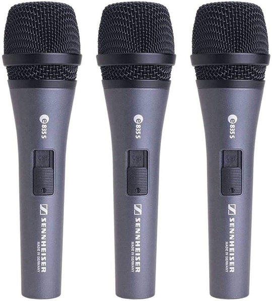 Sennheiser 3-Pack E835-S Dynamic Vocal Microphone with 3 XLR Mic Cables XLR-M to XLR-F