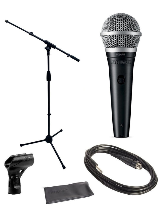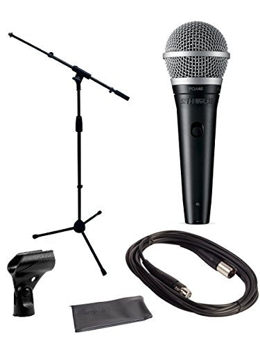 Shure PGA48 Microphone Bundle with MIC Boom Stand and 1/4" Cable. The PGA48 Cardioid Dynamic Vocal Microphone from Shure features a durable, rugged design geared towards spoken word and karaoke use, and includes an XLR-QTR cable....Sale price $79.99Regular price $88.00 -
