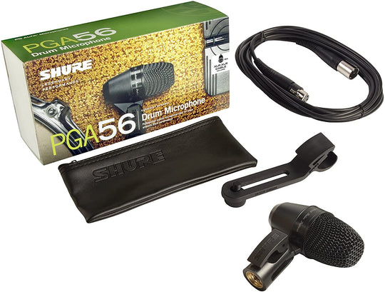 Shure PGA56-XLR Cardioid Swivel-Mount Dynamic Snare/Tom Microphone with AP56DM Drum Mount and 15' XLR-XLR Cable