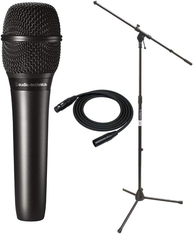 Audio-Technica AT2010 Cardioid Condenser Handheld Microphone with Mic Stand and XLR Cable Bundle (3 Items)