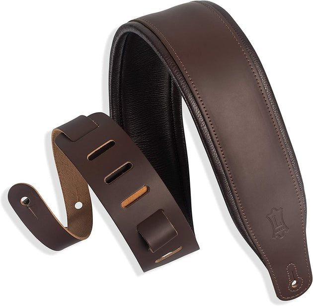 Levy's Leathers DM1PD-DBR 3 Leather Guitar Strap Foam Padding Dark Brown
