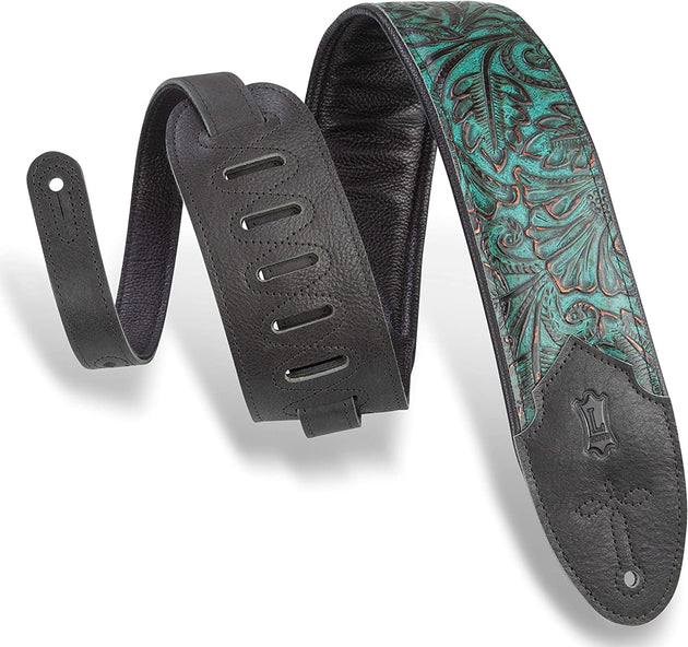 Levy's Leathers M4WP-001 3 wide Embossed Leather Guitar Strap Palm Jade