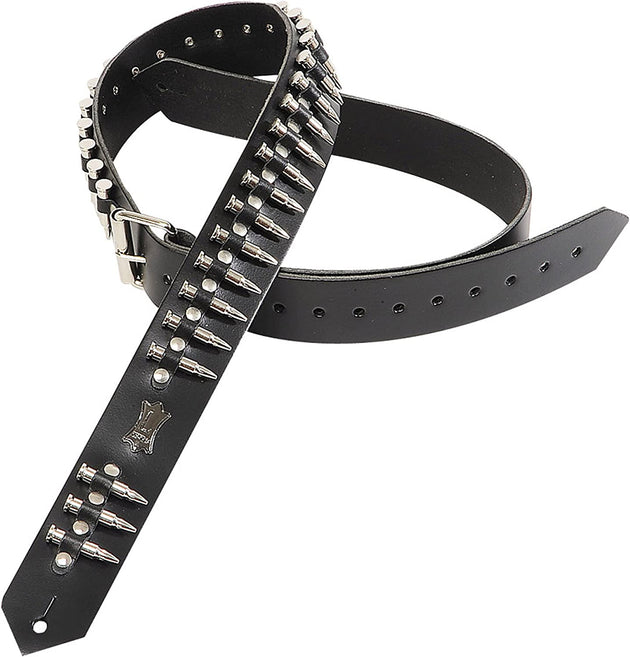 Levy's Leathers PM28-2B-BLK Genuine Leather Guitar Strap with Fake Bullets Black