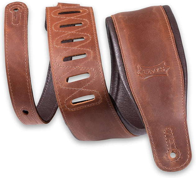 Levy's Leathers PM32BH-BRN 3.25” Wide Butter Leather Guitar Strap in Brown