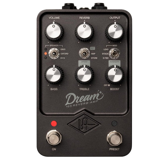 Universal Audio UAFX Dream '65 Reverb Amplifier Powerful UAFX dual-engine delivers the most authentic mid-'60s American tube combo sound ever placed into a stompbox Authentic spring reverb and vibrato modeled from a "golden unit" amp heard...Regular price $399.00 -