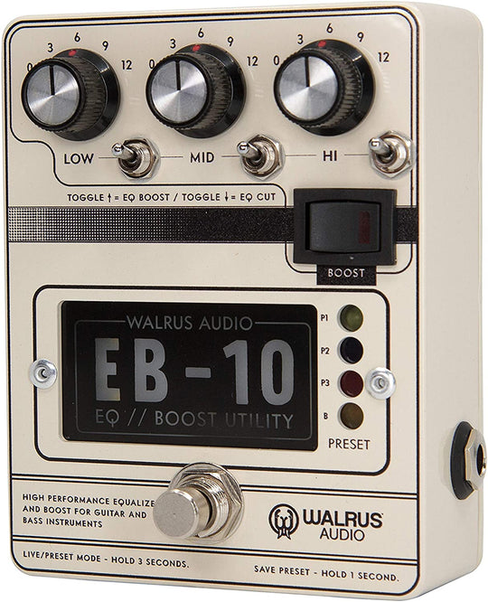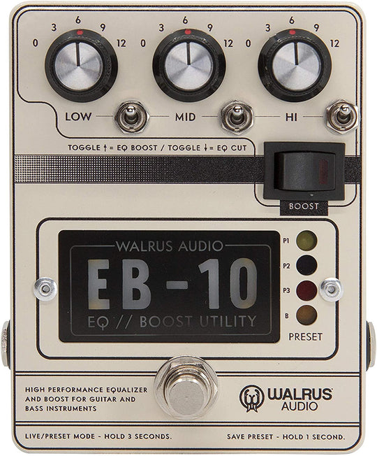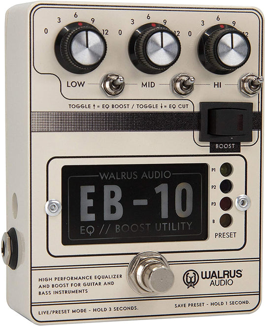 Walrus Audio EB-10Preamp / EQ / Boost, CreamA tone tweakers delight, the EB-10 works as a preamp, EQ and boost with three available presets to meticulously craft your guitar's sound allowing for studio-grade electric guitar tone...Sale price $199.99Regular price $229.00 -