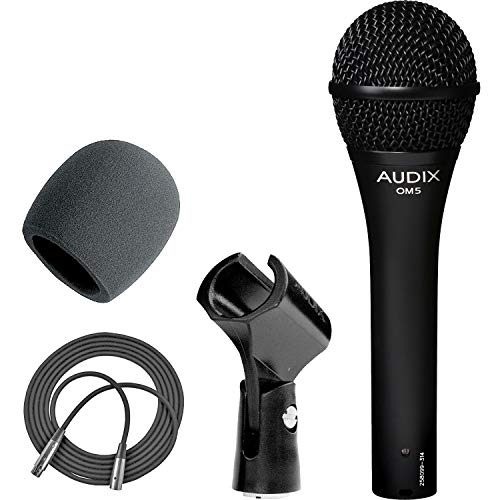 Audix OM5 Dynamic Microphone, Hyper-Cardioid + On Stage Foam Windscreen for Handheld Microphones + XLR Mic Cable XLR-M to XLR-F.Regular price $209.99