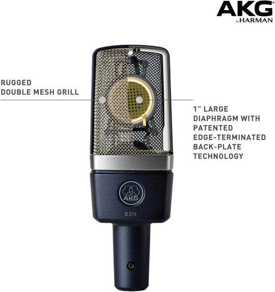 BUNDLE INCLUDES:- AKG C214 Large-Diaphragm Condenser Microphone- Boom Stand- Pop Filter- XLR Cable- Polishing ClothThe AKG C214 Large Diaphragm Microphone is a premium-grade condenser microphone designed for multiple recording applications. The AKG C214 provides an affordable...Regular price $479.00 -