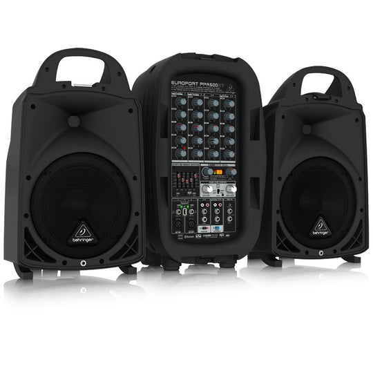 Behringer EUROPORT PPA500BT 500W 6-Channel Portable PA System with Bluetooth and 2 Speaker Stands, Cables and Speaker Bag Bundle.Features: Behringer EUROPORT PPA500BT - 500W 6-Channel Portable PA System with Bluetooth Wireless Two mic preamps with phantom...Sale price $599.99Regular price $799.99