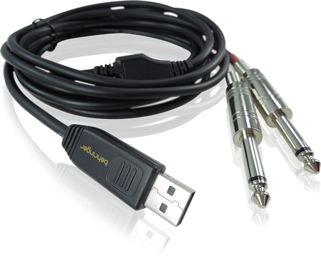BEHRINGER 2 Stereo 1/4" Line In to USB Interface Cable Black, (LINE2USB)