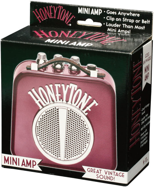 The Danelectro Honeytone N-10 guitar mini amp cranks like a little hot rod has a great clean or overdriven sound. The Honeytone amp also boasts a real leather handle, belt clip, headphone jack, volume, tone, and...Regular price $39.95 -