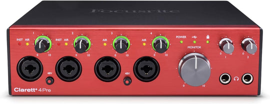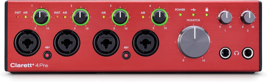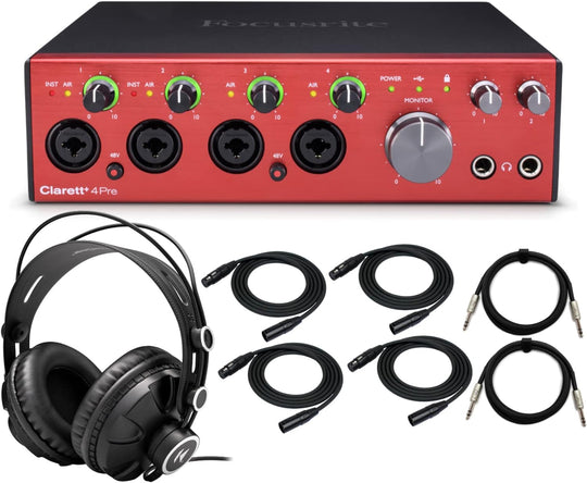 Focusrite Clarett+ 4Pre 18-In and 8-Out Audio Interface Bundle with Headphones, Microphone Cable (4-Pack), and TRS Cable (2-Pack) (8 Items)Clarett+ 4Pre is the compact, flexible interface designed to bring pure analogue sound to all your instruments.The...Regular price $769.99 -
