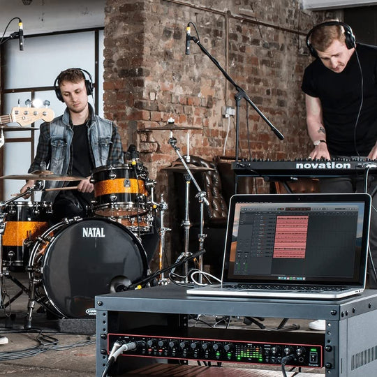 Focusrite Scarlett 18i20 USB Audio Interface (2nd Generation) includes Bonus Audio-Technica Professional Monitor Headphones ATH-M20X. 2 XLR mic cables, stand and a gooseneck pop filter.Sale price $449.99Regular price $609.58 -