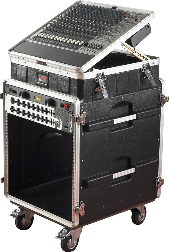ATA Wood Flight Pop-Up Console Rack Case; 10U Top; 14U Bottom; w/ CastersFEATURES:- 9mm Plywood Construction with Laminated Exterior - Red Recessed Twist Latches and Spring-Loaded Rubber-Gripped Handles - Heavy-Duty Commercial Grade Plated Hardware and Reinforced...Sale price $1,100.00Regular price $1,599.99 -