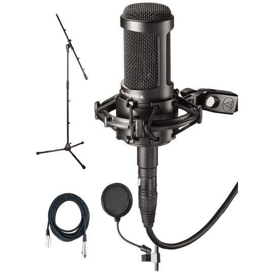 Audio Technica AT2050 Studio Condenser Mic Bundle w/Pop Filter, Mic Cable & Boom Stand