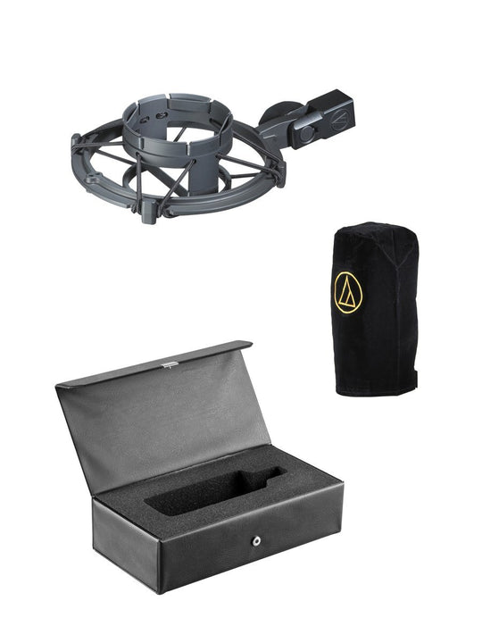 Audio-Technica AT4040 Cardioid Condenser Mic with Shock Mount + Mic Stand + gooseneck pop filter + Clean Cloth