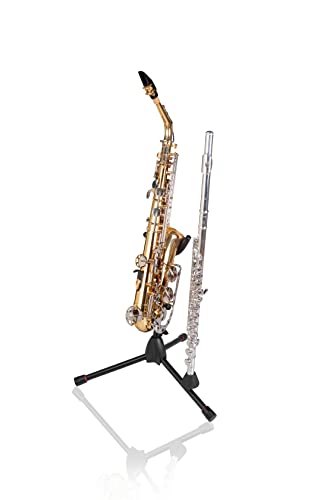 Gator Frameworks Upright Weighted Round Base Stand for Alto and Tenor Saxophones with Clarinet and Flute Peg Attachment (GFW-BNO-SAXFLU)