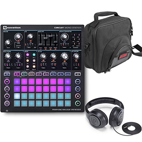 Novation Circuit Mono Station Paraphonic Analog Synthesizer with Ableton Live Lite, DJ Gig Bag and Headphones Bundle
