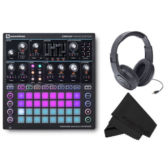 Novation Circuit Mono Station Paraphonic Analog Synthesizer w/ Microfiber Cloth and Headphones Bundle