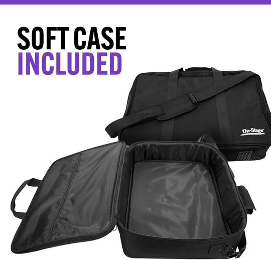 On-Stage DPT4000 Percussion Tray - Secure and Versatile Instrument Holder for Drummers and Musicians, Ensures Convenient Access to Gear, Soft Case Included for Easy Transportation