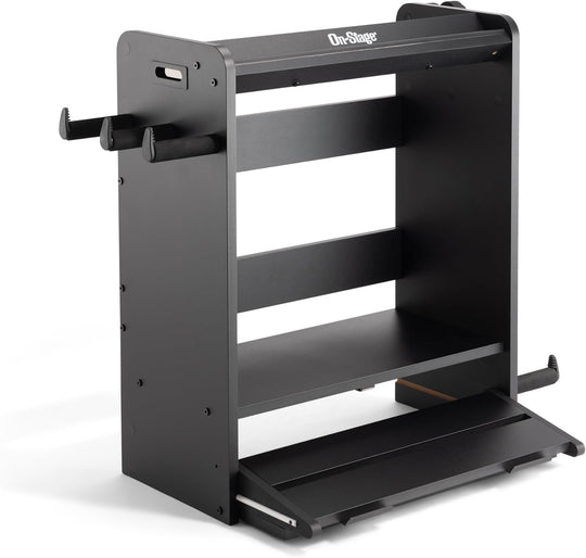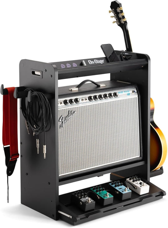 Keep all your guitar gear safely organized, on display, and ready to play with the GWS5000B Guitar Workstation. This multipurpose workstation is a combination amp stand, guitar stand, cable and strap hanger, pedalboard, and accessory tray...Regular price $225.95