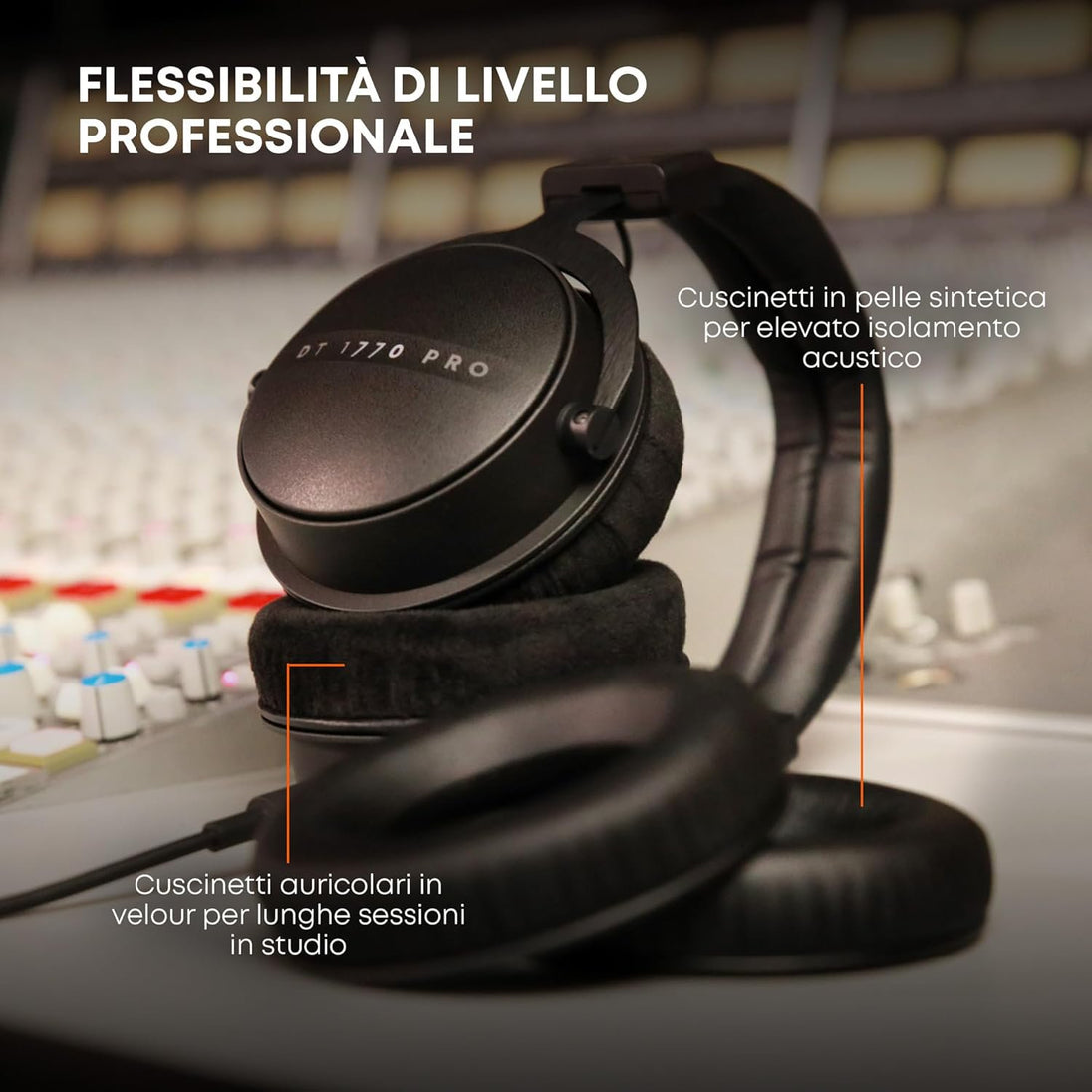 Thanks to their closed-back design, the DT 1770 PRO MKII offers a high level of sound insulation. Suitable for professional recording, monitoring and editing, the premium headphones perform impressively as reference headphones both in everyday studio work and in loud live environments. The lively sound profile is characterized by powerful bass, natural mids and detailed highs.
