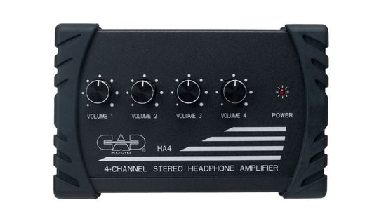 Four Channel Stereo Headphone AmplifierThe HA4 is a compact stereo headphone amplifierfeaturing four discrete channels with individualvolume controls. Includes power supply and RCA female to 1 / 4 TRS adaptor.Sale price $59.00Regular price $65.00 -