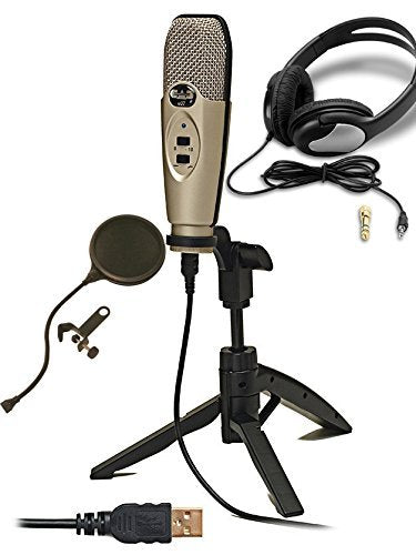 CAD U37 USB Microphone Bundle with Studio Headphones and Pop Filter Popper Stopper