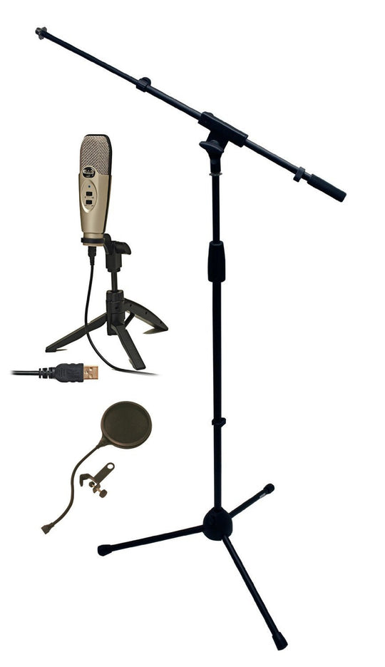 CAD U37 USB Microphone Bundle with Mic Boom Stand and Pop Filter Popper Stopper