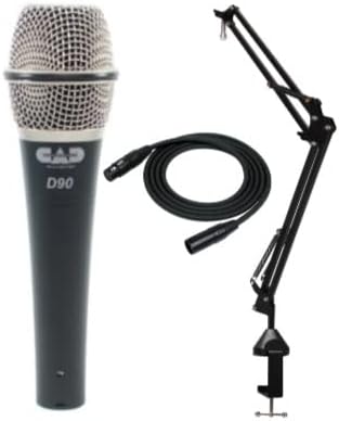 CAD Audio D90 Premium Supercardioid Dynamic Handheld Microphone Bundle with Boom Arm Stand and 25-Feet XLR Male to XLR Female Cable (3 items)