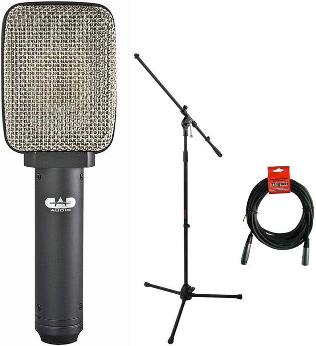 CAD D80 Large Diaphragm Moving Coil Dynamic Microphone with MS-5230F Mic Tripod Stand & XLR Cable Bundle