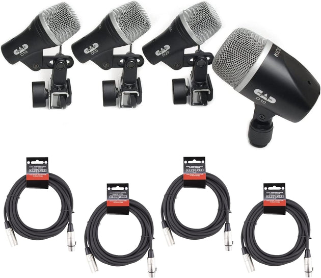 CAD Audio Stage4 4-Piece Drum Mic Pack - Kick Mic, Snare Mic and 2 Tom Mics - Bundle with 4 XLR Cables