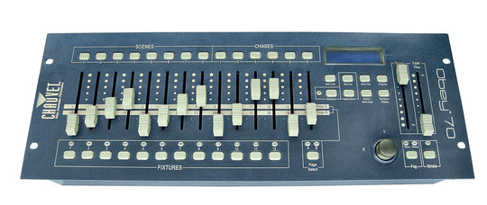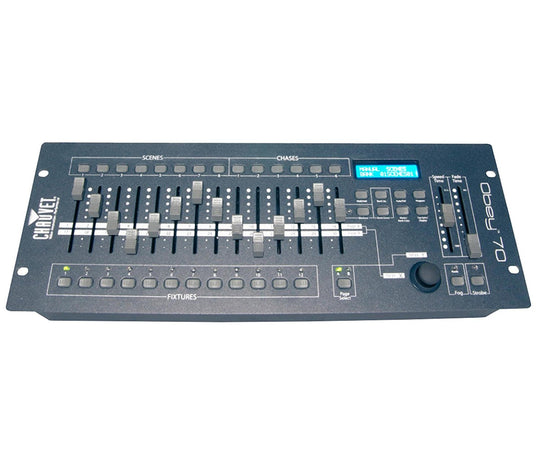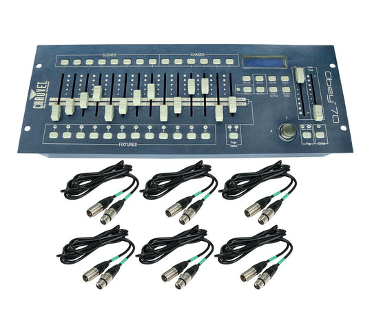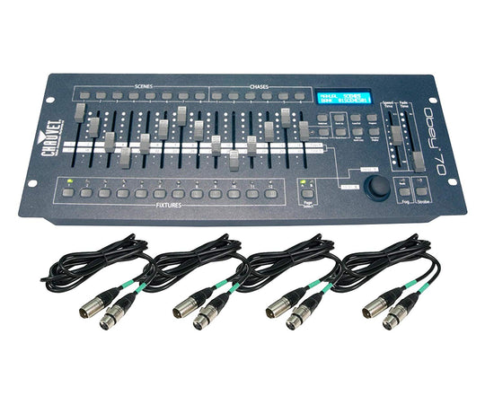 CHAUVET OBEY70 LED Universal DMX-512 Light/Fog Controller + with 3 10' & 1 25' Cables.Package Includes: (1) Chauvet Obey70 Light Controller (1) Chauvet DMX3P25FT Cable (3) Chauvet DMX3P10FT DMX Cables Bigger shows call for more accessibility...Sale price $252.99Regular price $256.00 -