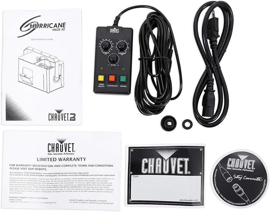 **Package Includes:** (1) Chauvet Hurricane Haze 2D Fog/Haze Machine (1) Gallon of Chauvet HFG Fog Fluid ---------- The **Chauvet Hurricane-Haze 2D** is a water-based haze machine with continuous output and a digital display to set up...Regular price $440.99 -
