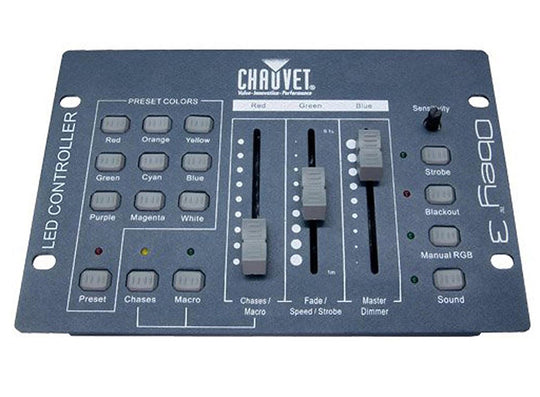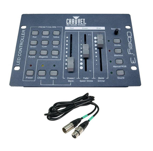 CHAUVET OBEY-3 Channel DMX-512 LED Light Controller + DMX3P25FT 25' Cable Bundle. he Chauvet Obey 3 DMX Controller is a cost-effective, easy to use 3-channel LED lighting controller, used to create Red, Green and Blue color...Regular price $99.99 -
