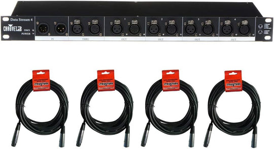 CHAUVET DJ Data Stream 4 DMX-512 Optical Splitter with (4) XLR-XLR Cable Bundle